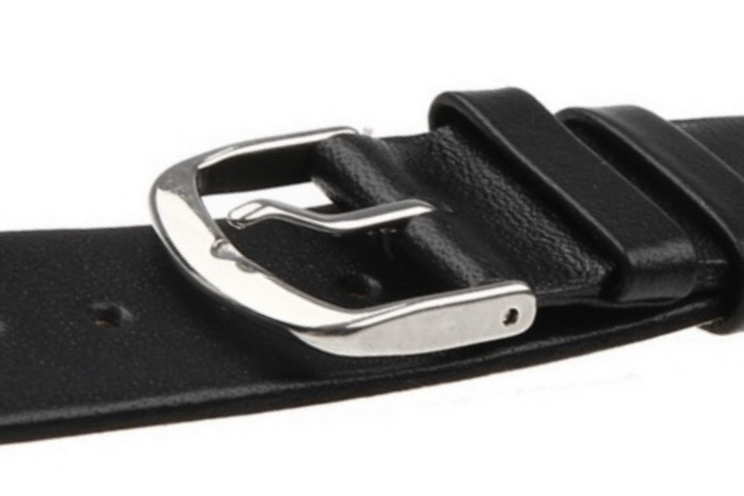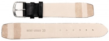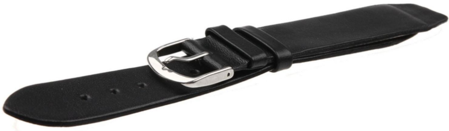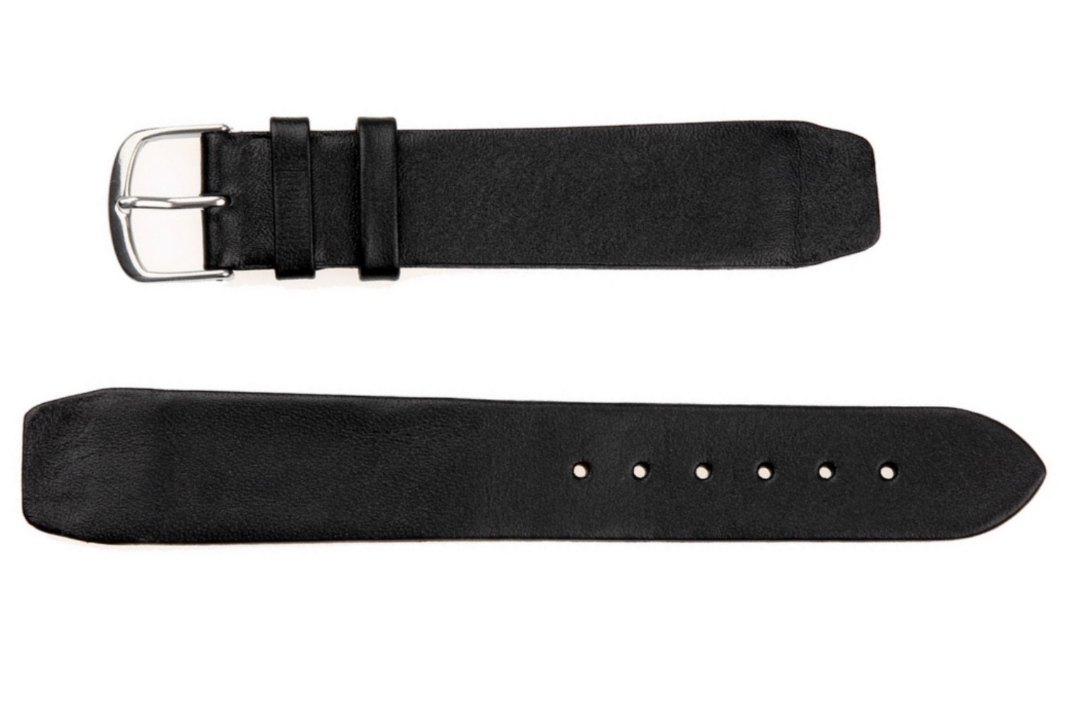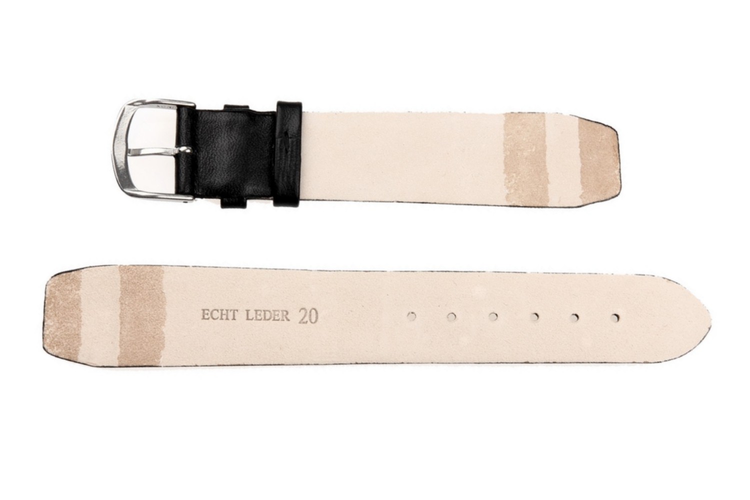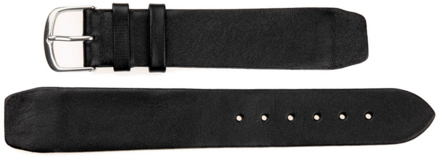 Płaski i spiczasty pasek klejony, dla zegarków ze stałymi teleskopami, gładka powierzchnia, góra z cielęcej skóry, spód z cielęcej skóry typu nubuk, druga szlufka specjalnie szyta, ekstra wąski i długi, gładki bez szycia w kolorze czarnym, klasyczna klamra, wyjątkowy design