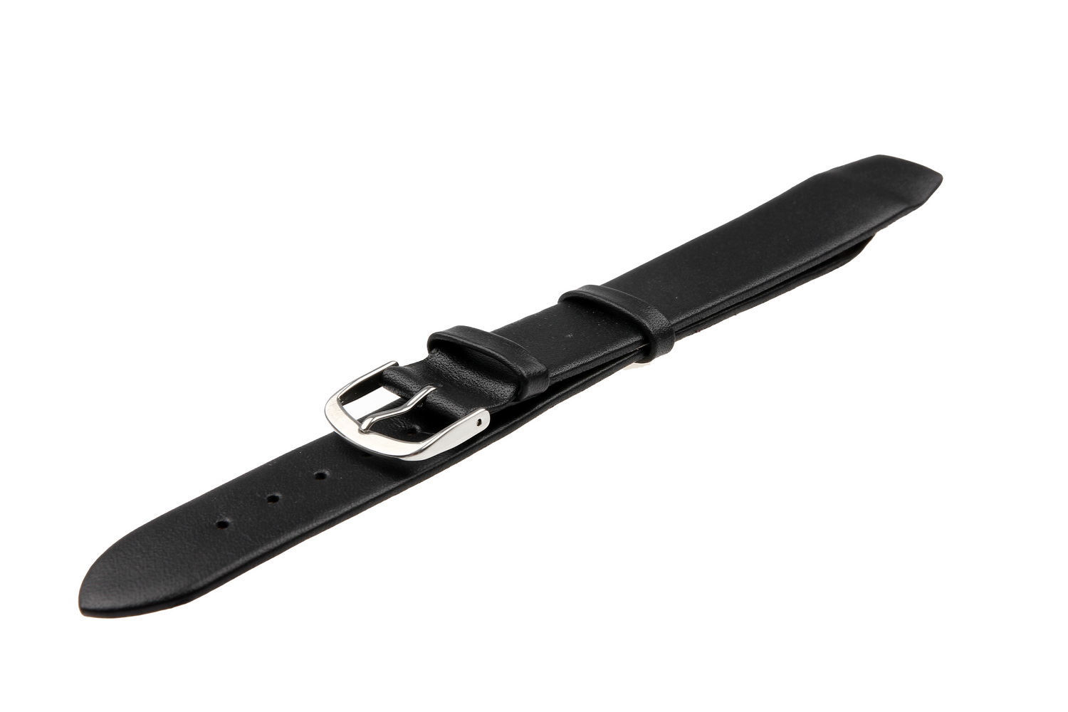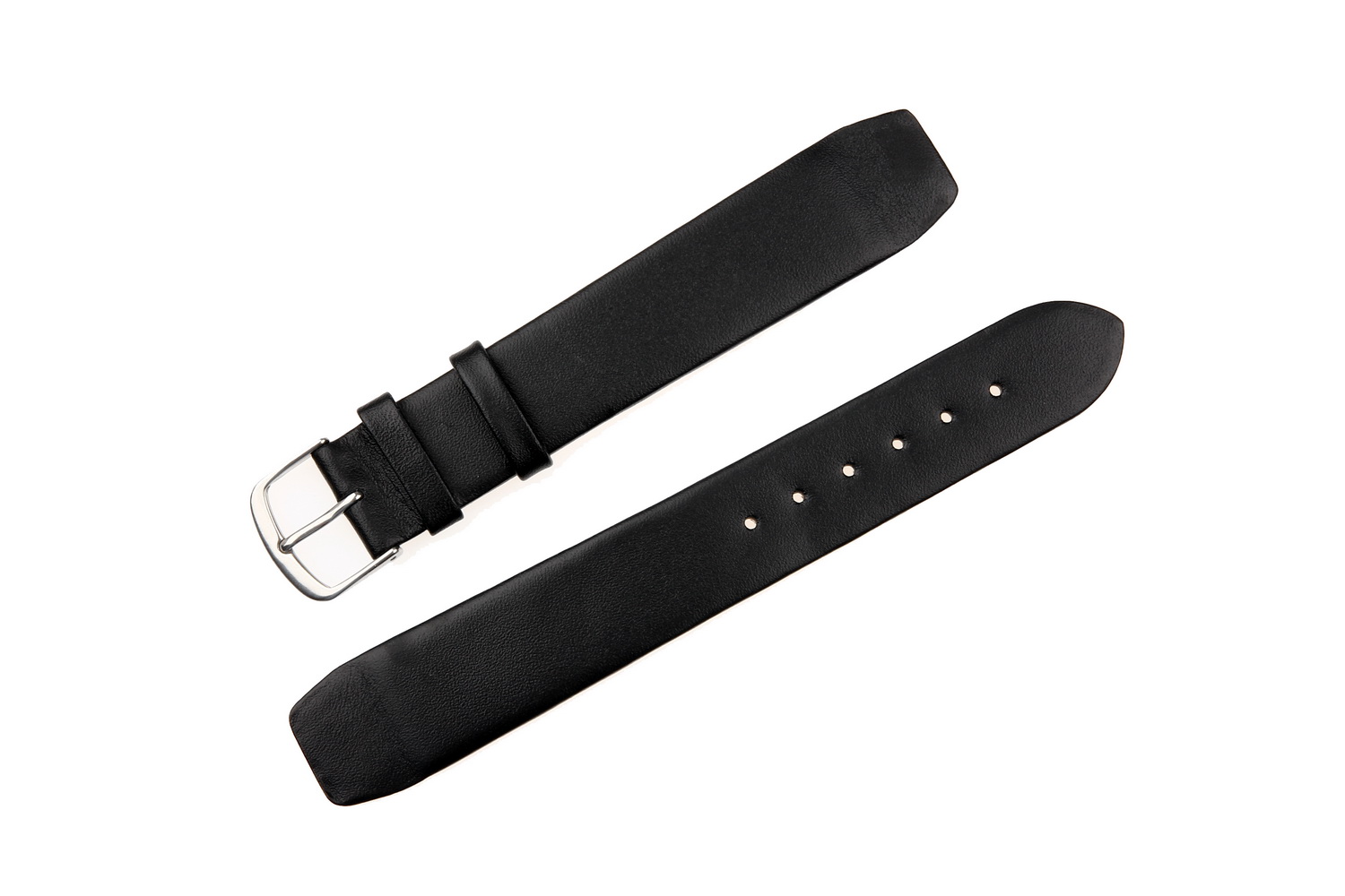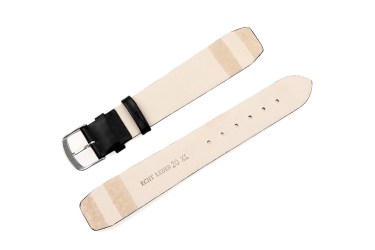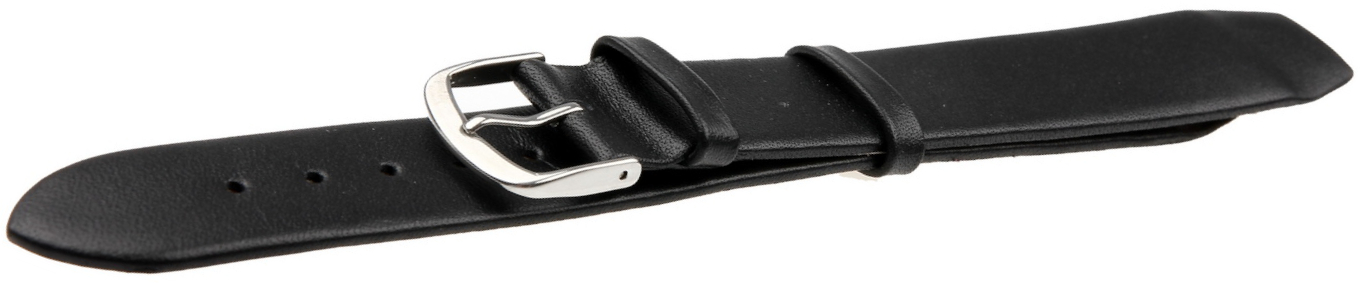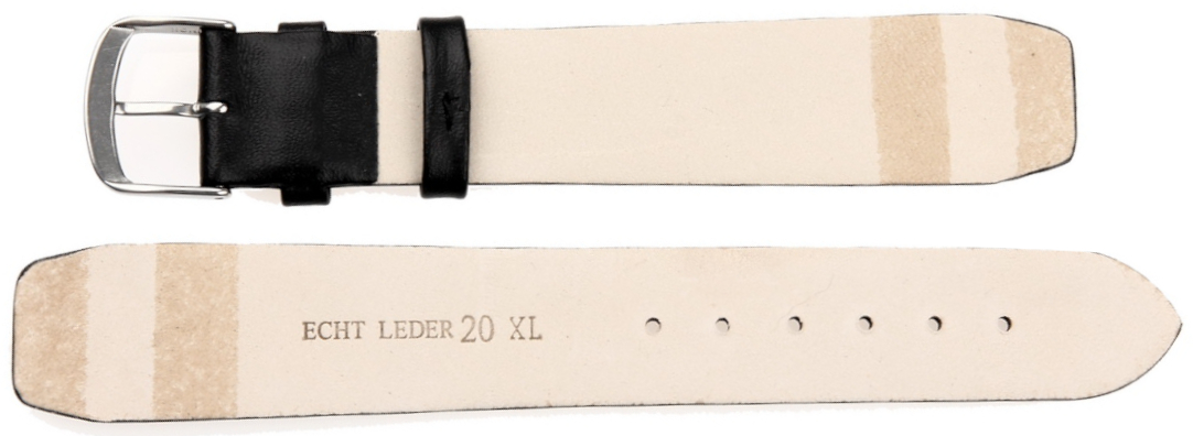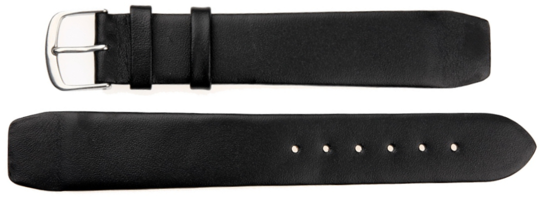 Płaski i spiczasty pasek klejony, dla zegarków ze stałymi teleskopami, gładka powierzchnia, góra z cielęcej skóry, spód z cielęcej skóry typu nubuk, druga szlufka specjalnie szyta, ekstra wąski i długi, gładki bez szycia w kolorze czarnym, klasyczna klamra, wyjątkowy design