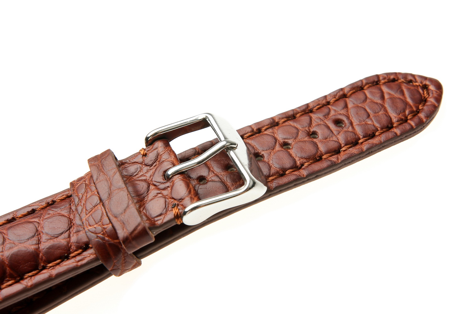 Skóra aligatora amerykańskiego, matowojedwabisty, tłoczony wzór "skóry krokodyla", ekskluzywny design, klasyczna klamra z bolcem