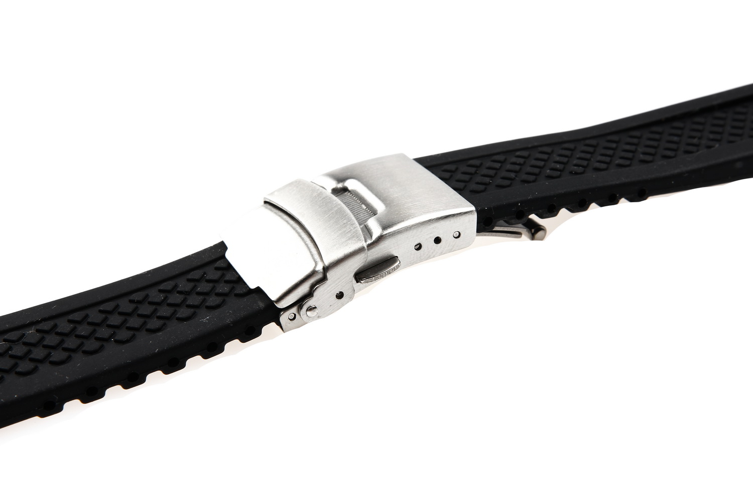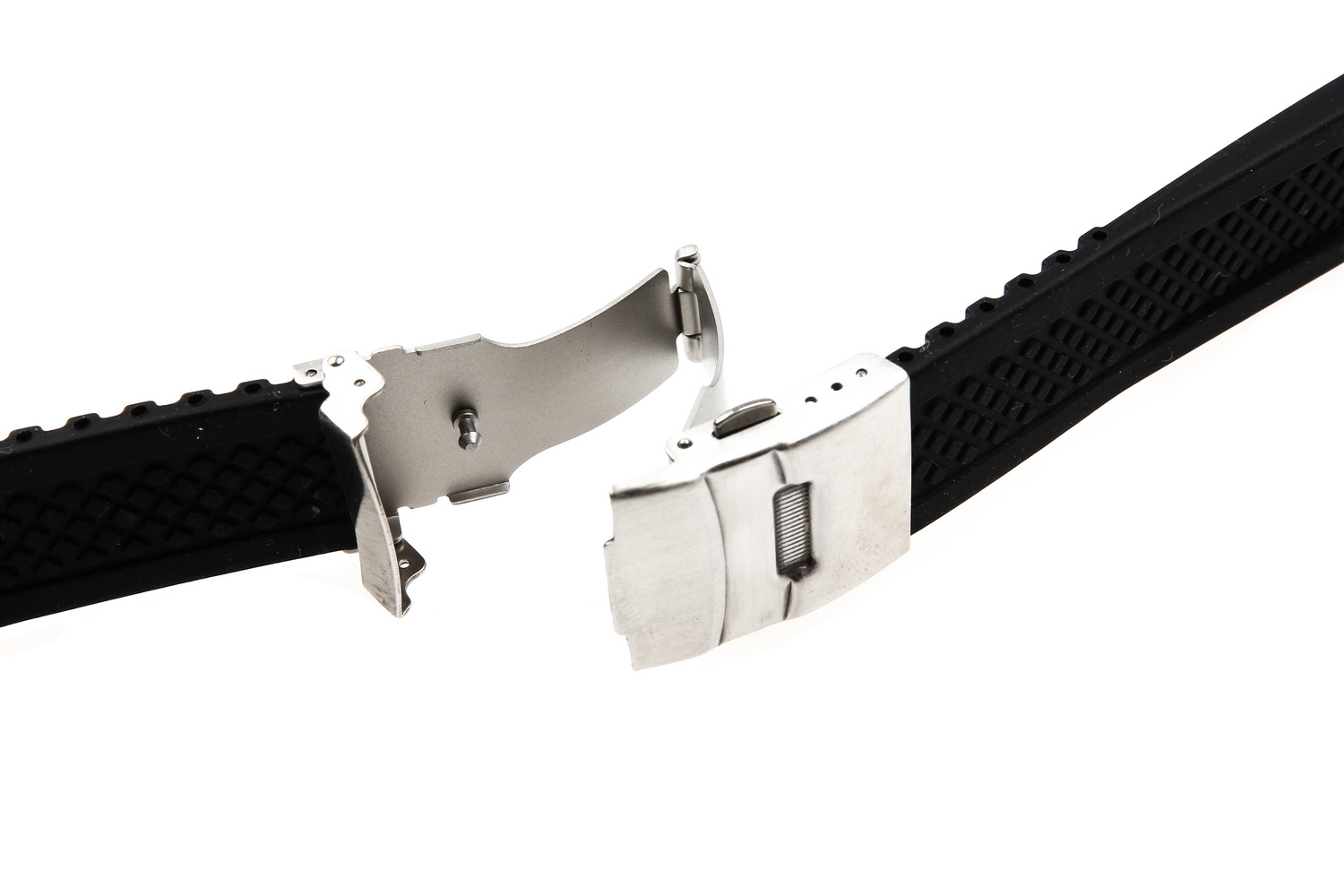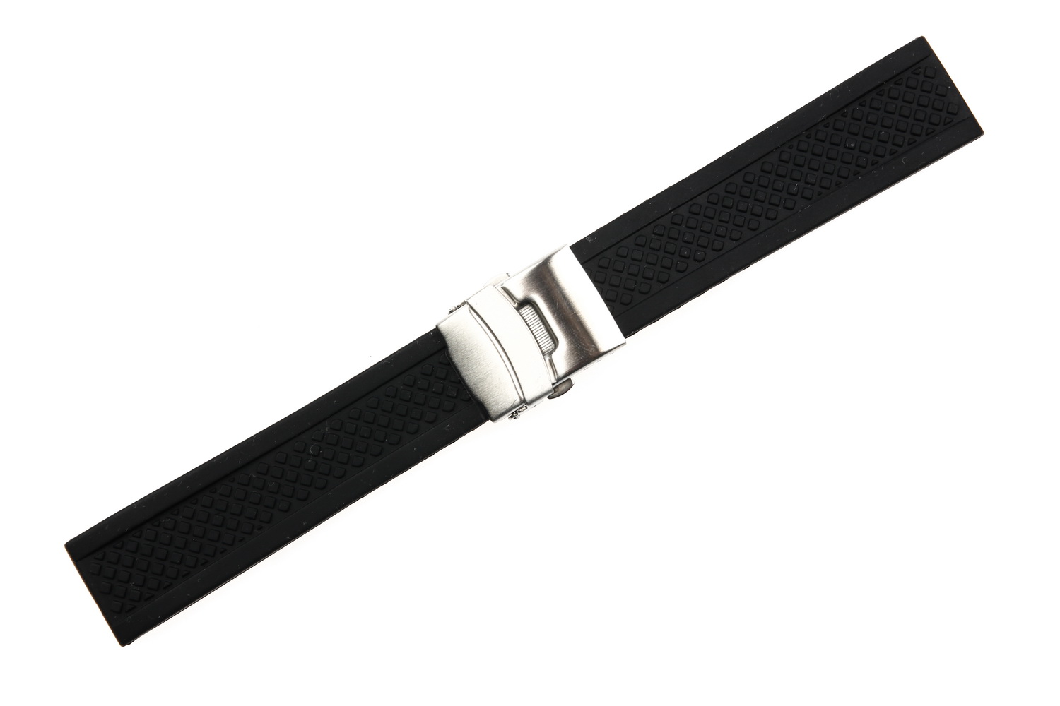Silikonowy pasek ze wzorem w kratkę i zabezpieczającą klamrą motylkową, czarny, sportowy design